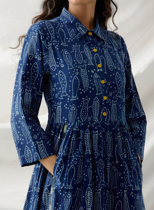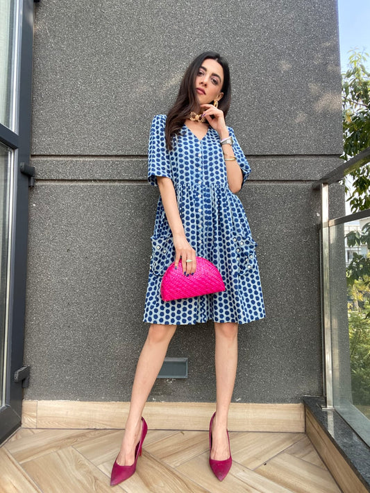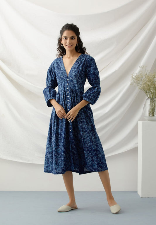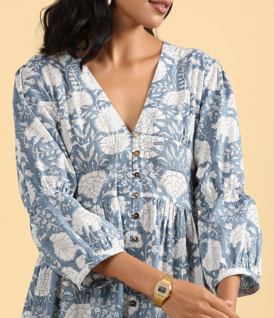 Floral fields- Deep neck floral dress with flouncy sleeves