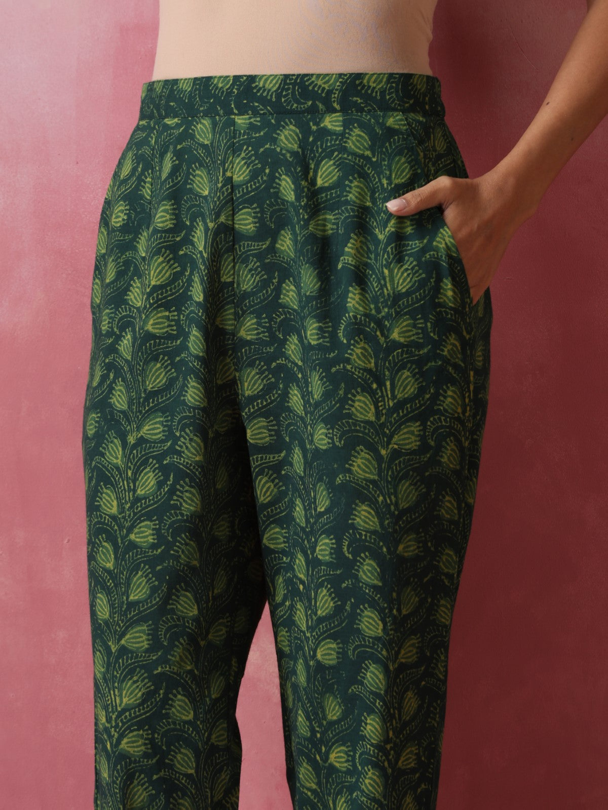 100% cotton - hand block printed. Natural Dyes used.