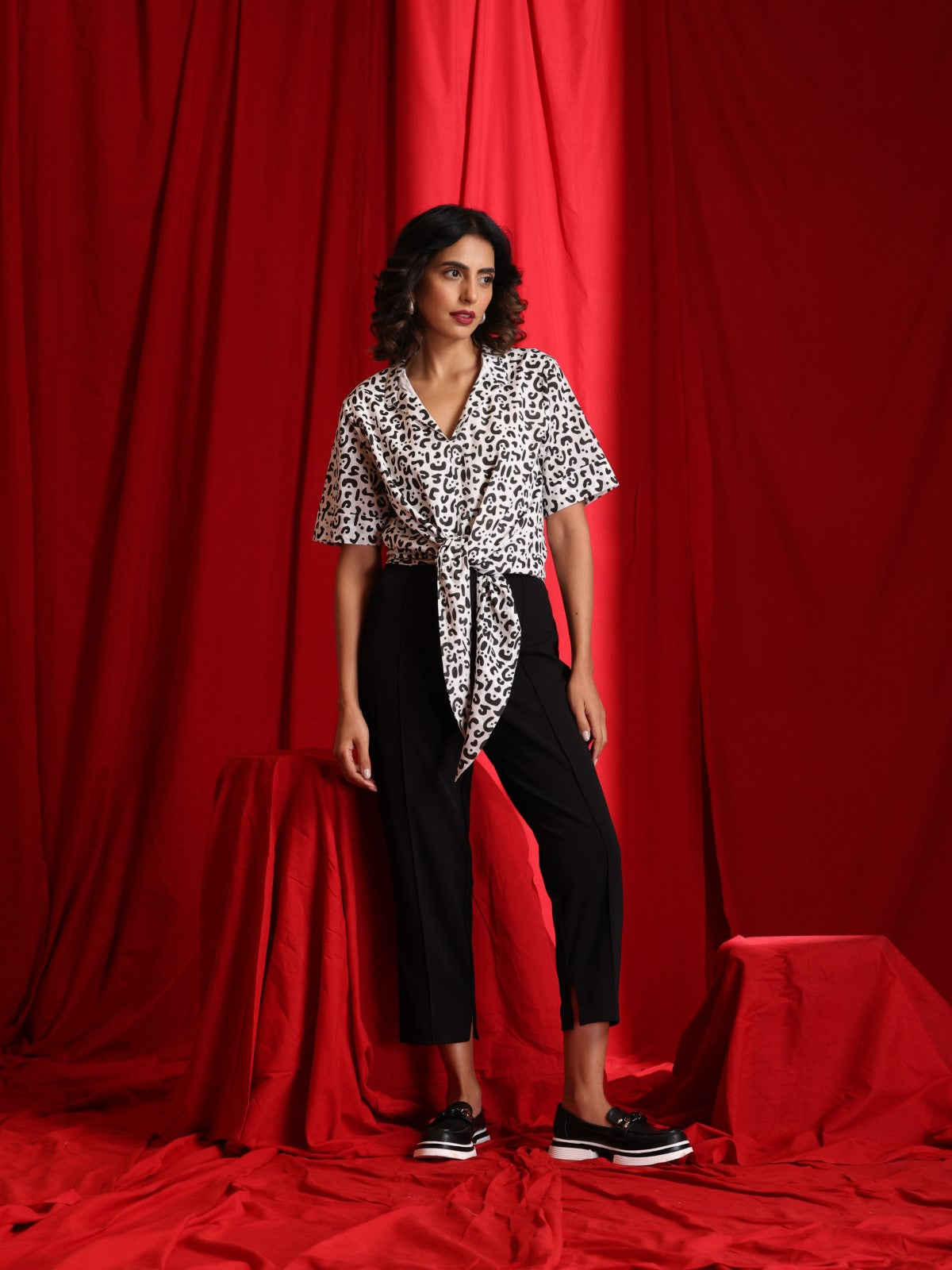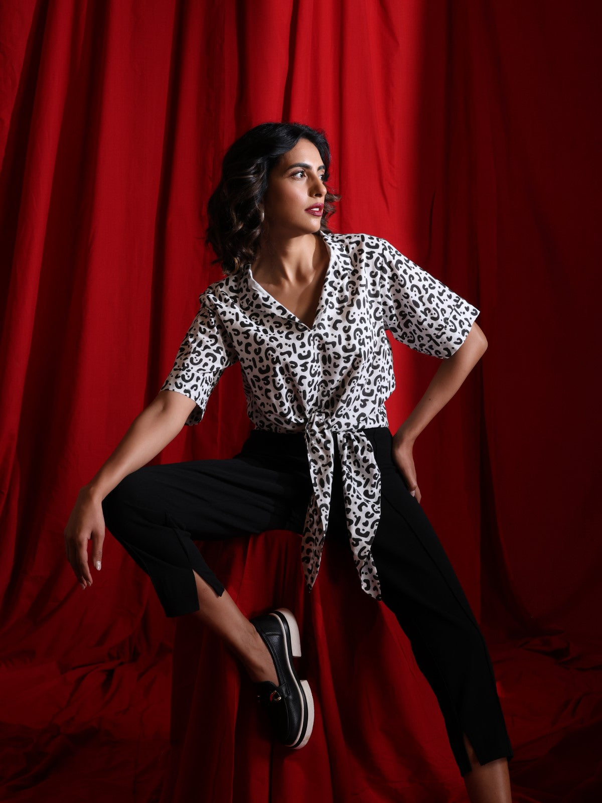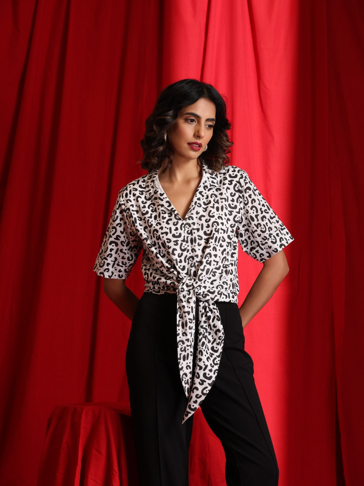 Featuring a top with open collar, abstract print and knot at the hemline, this is a smart casual top that can be worn both in office and on vacations. Wear with denims, black trousers or fitted pencil skirts with sneakers or kitten heels, depending on the occasion and event.