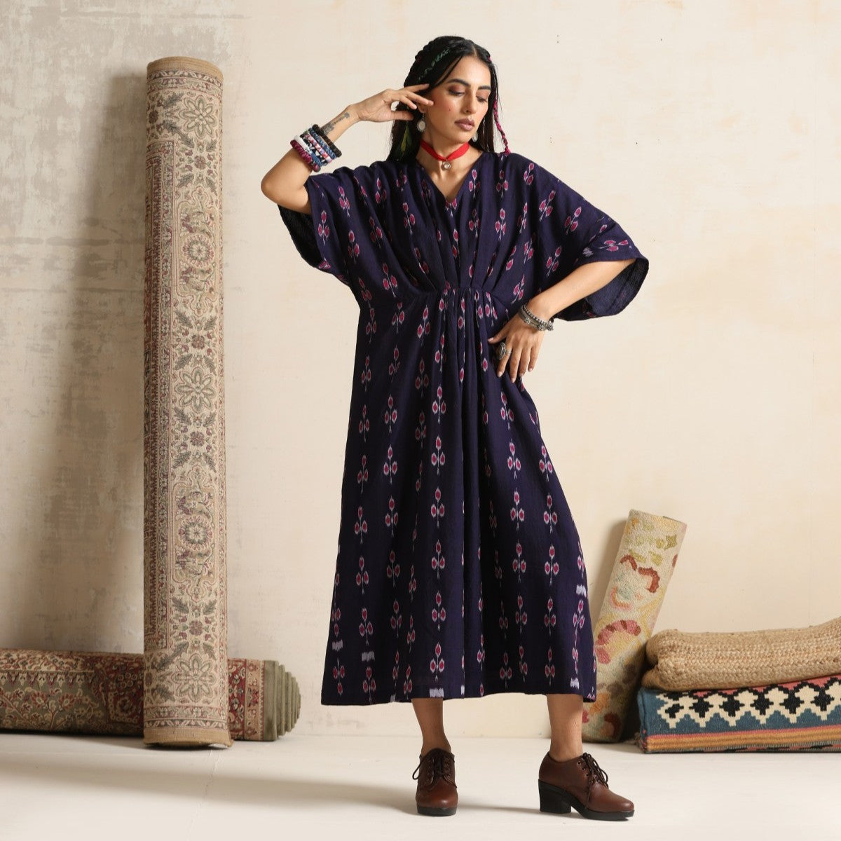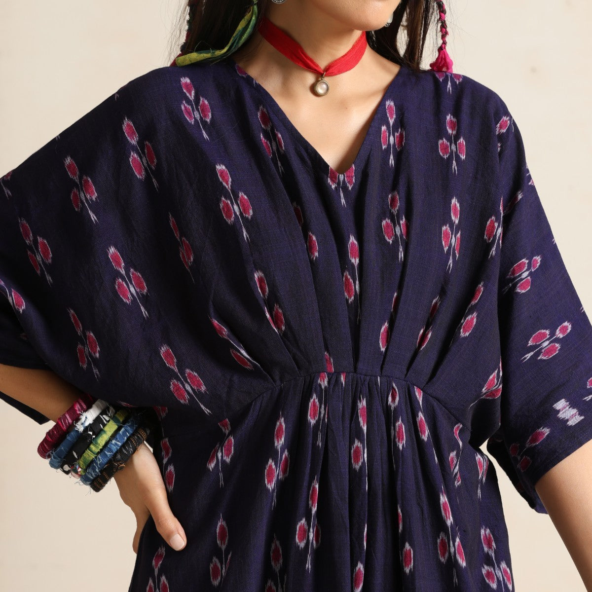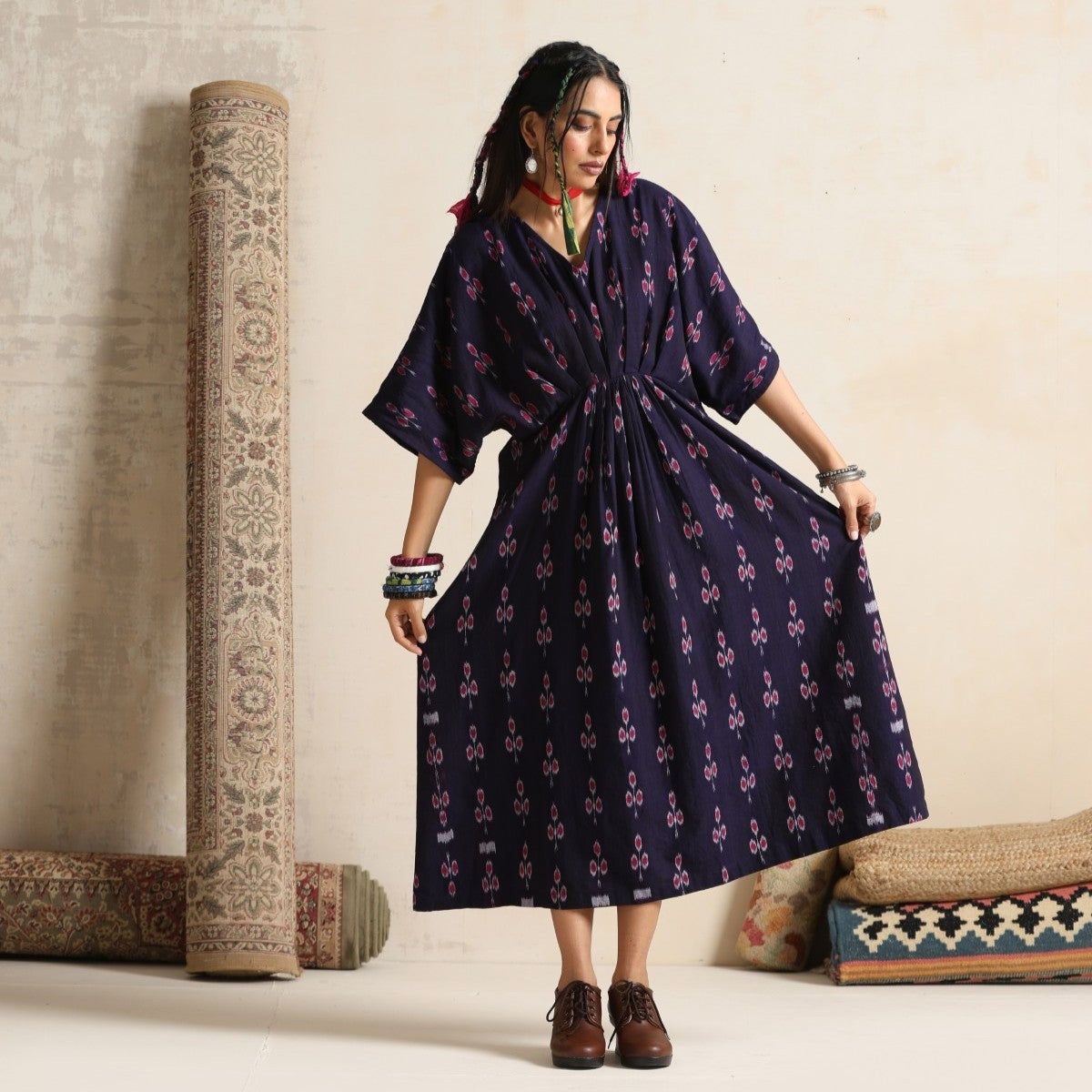 Haseen- Front pleated dress / kaftan in handwoven ikat