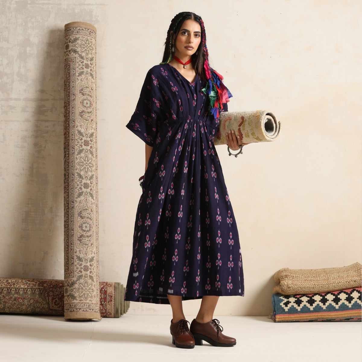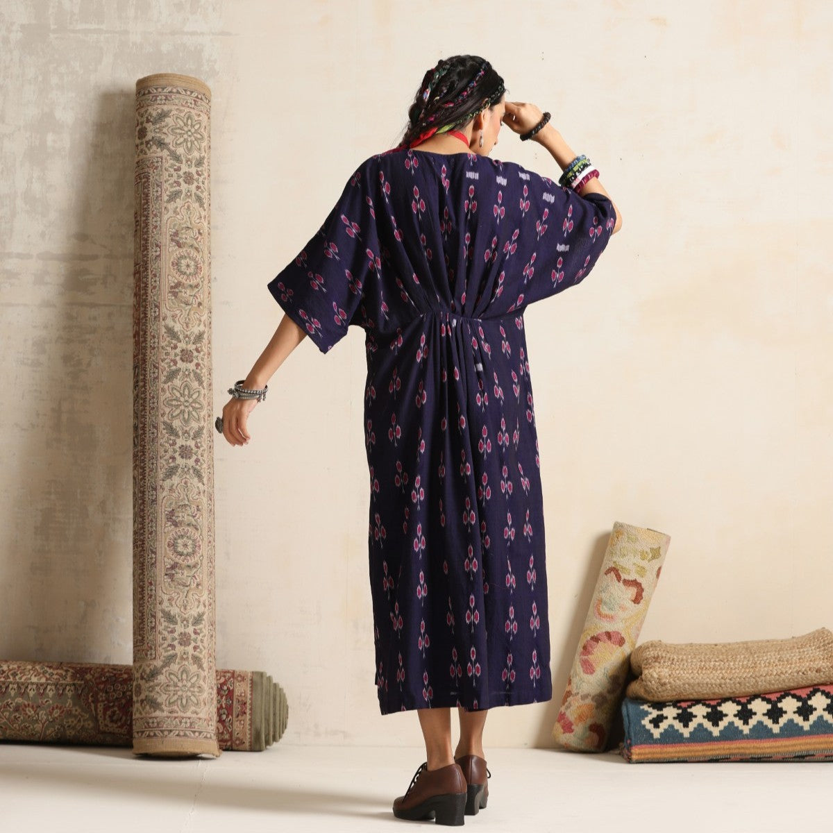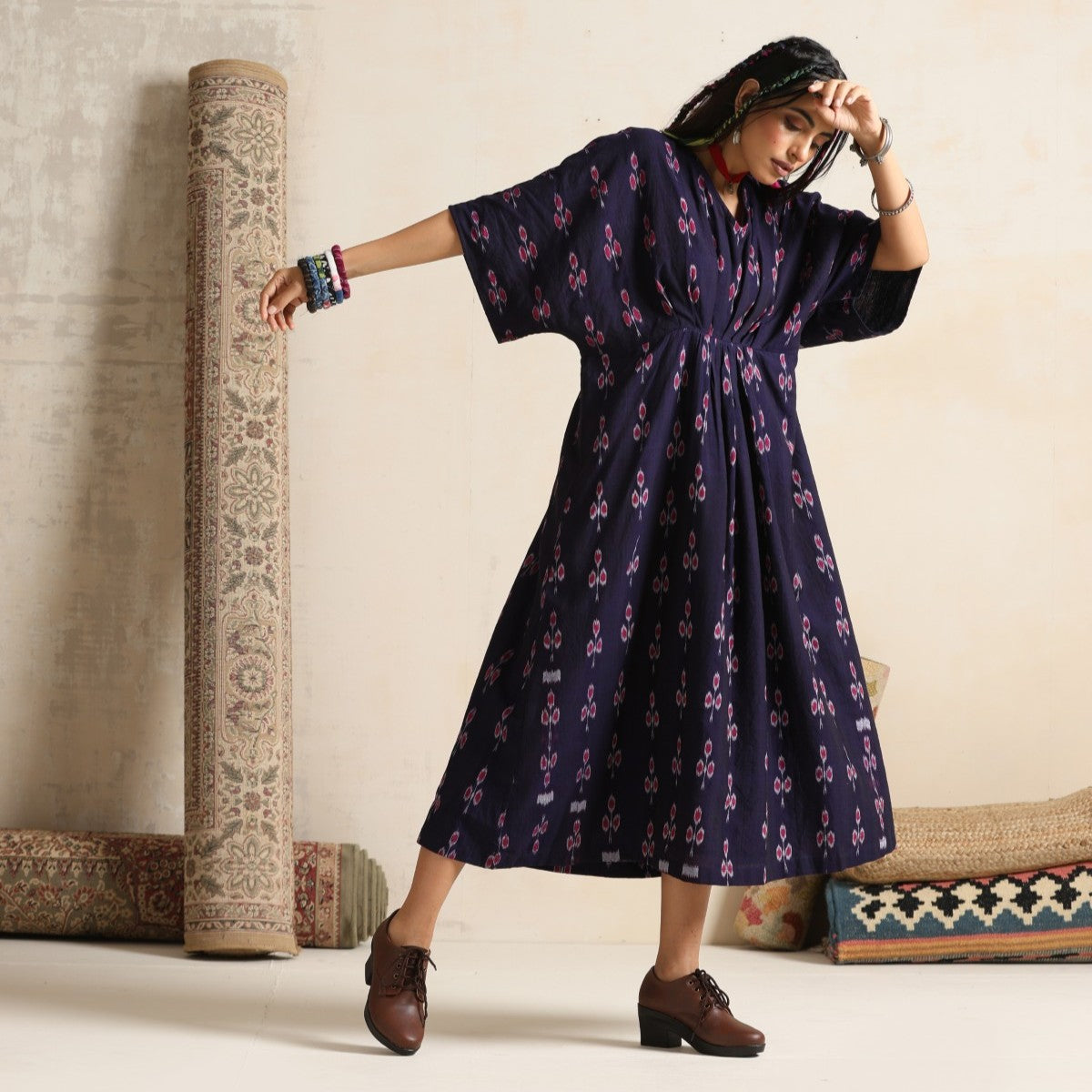 Haseen- Front pleated dress / kaftan in handwoven ikat