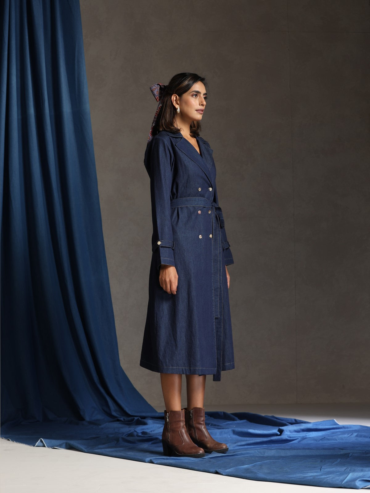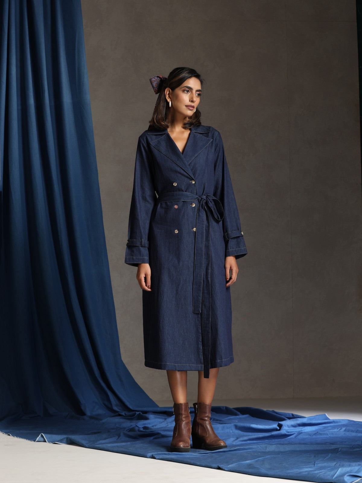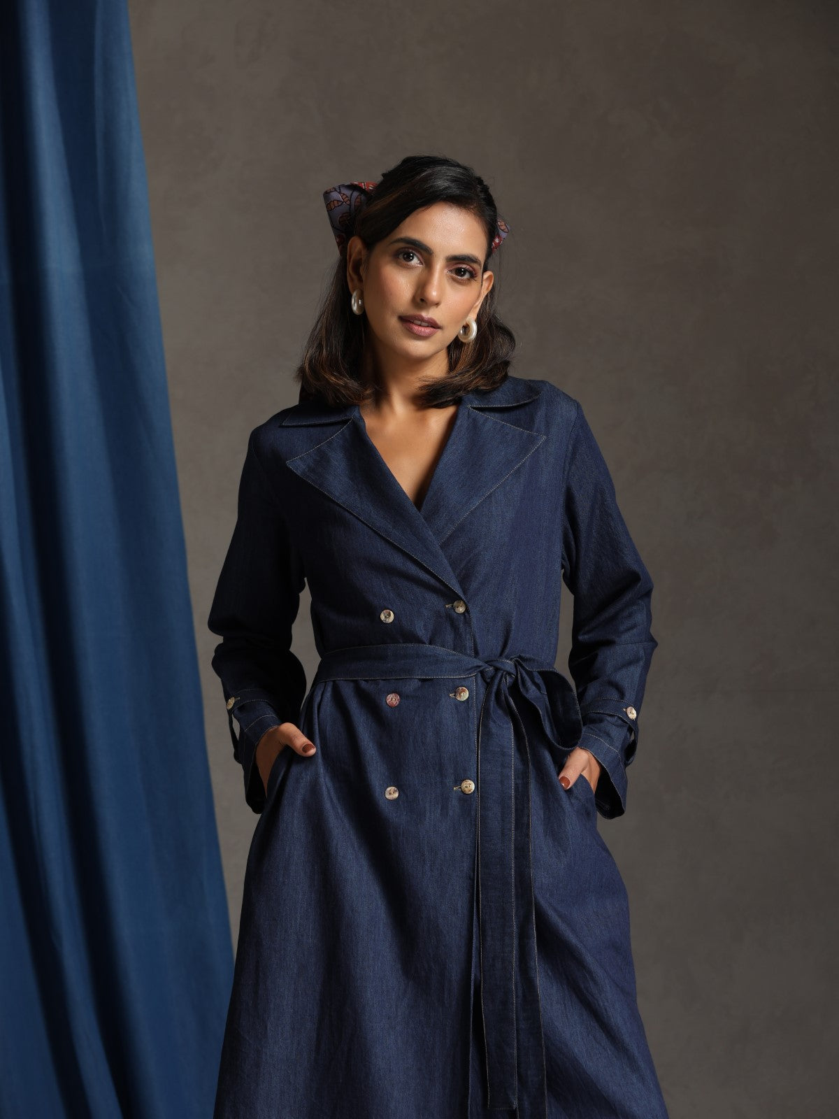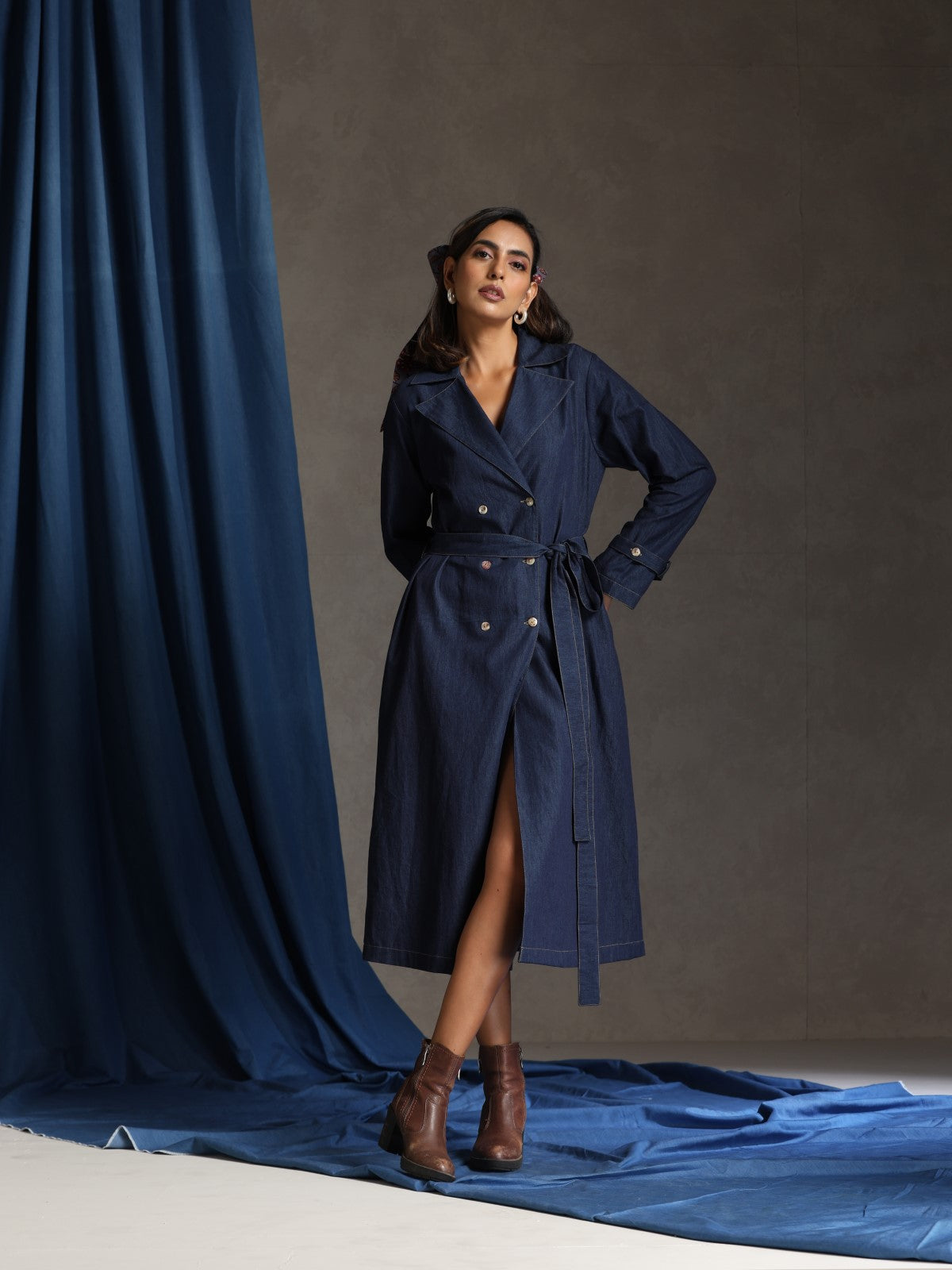 Nomad- Sexy, classy, versatile Nomad! This piece is a must have from this collection, as this can be styled at least 8-10 different ways easily. Just as a jacket/coat dress or as an overlay over any dress, trousers, skirt. Over a turtleneck for winters or over a crop top + shorts for summers, with sneakers or heels, the possibilities are endless. As the fabric is lightweight, it can be easily worn in summers. The front has double breasted look, the sleeves have stylized loop, and a fabric belt to complete the look. As always, we have given pockets to keep you handsfree and fuss free. Definitely a steal at this price.