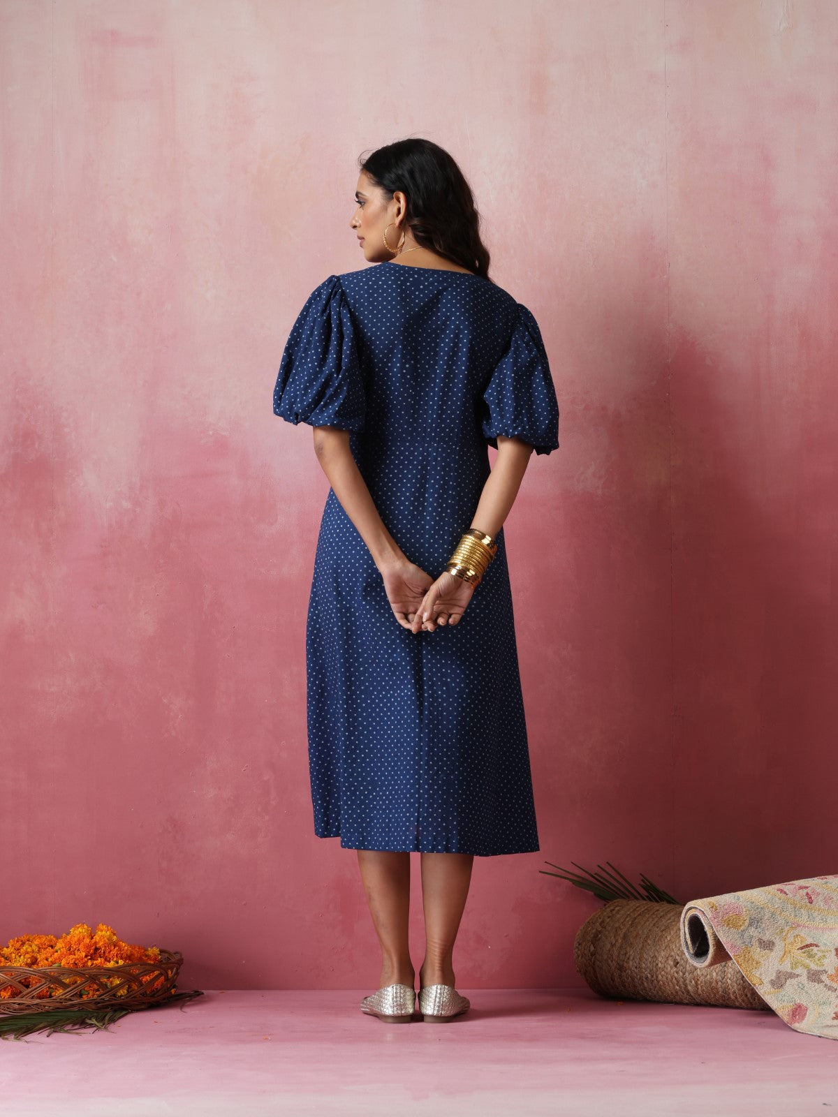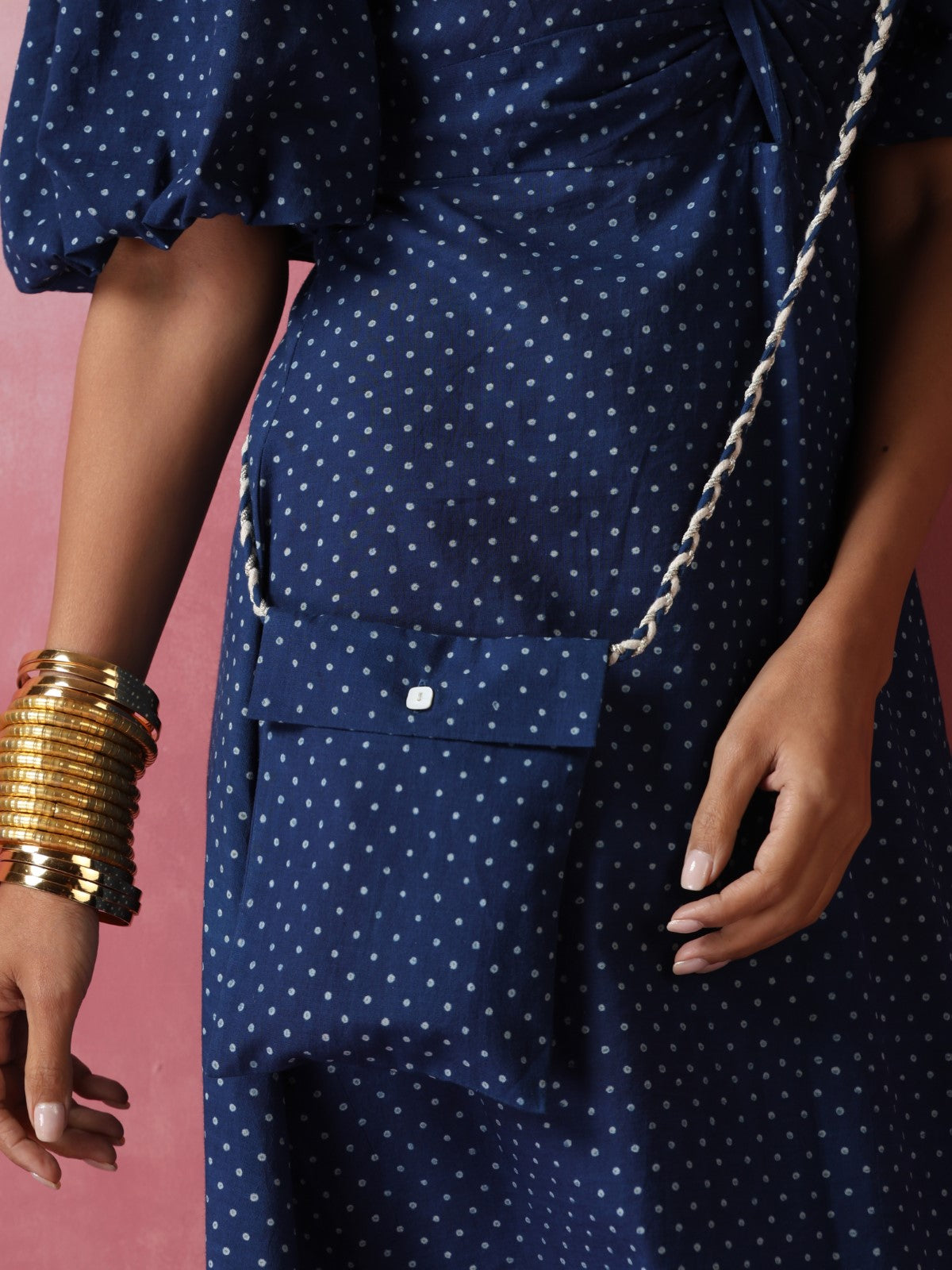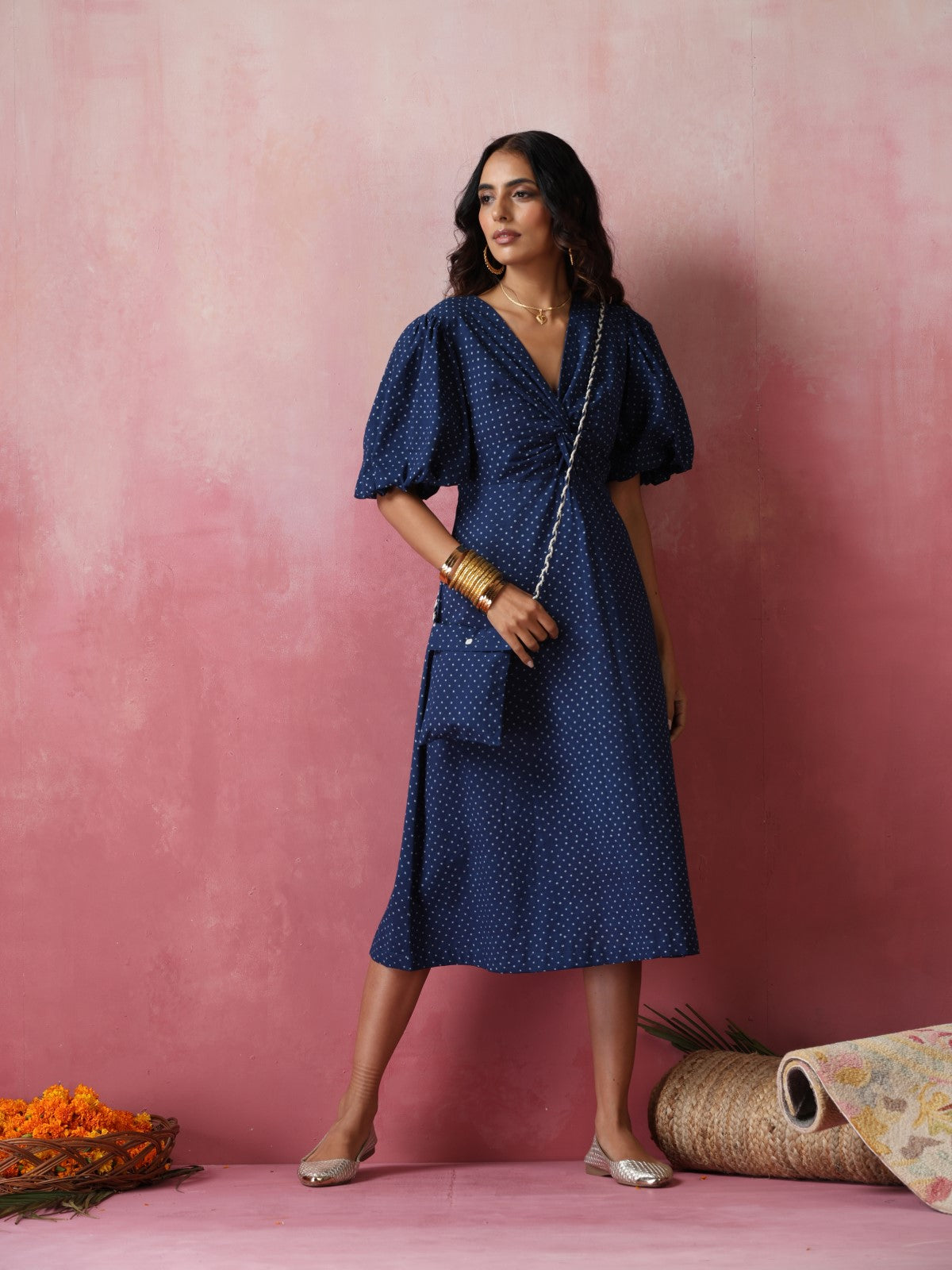 Featuring a fabulous dress crafted in classic polka print . This flowy maxi dress has a V neckline and twisted front yoke. The sleeves are dramatic and looks amazing on wearing. The fall is smooth and flattering and the dress works for vacations and casual hangs.
